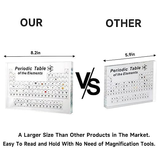 【Made with real elements】This periodic table with 83 real elements embedded in crystal clear acrylic, except for some radioactive elements,That's very collectible.